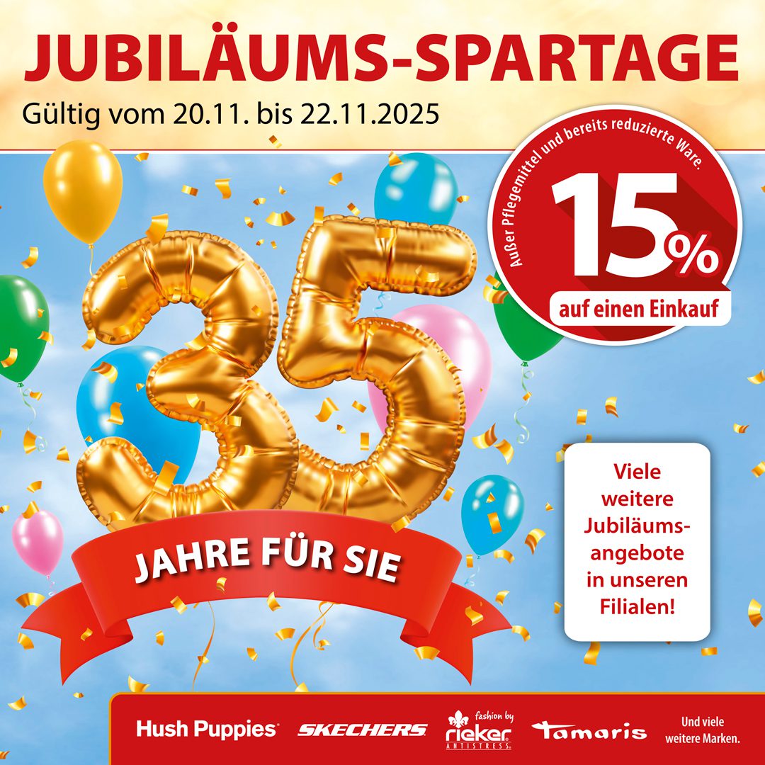 mayers marken schuhevom 20.11. – 22.11.2025 könnt ihr in allen teilnehmenden filialen 15% auf einen einkauf sparen. viele weitere jubiläumsangebote in unseren filialen! kommt vorbei, wir beraten euch gern!20.11.2025 bis 22.11.2025Mayers Marken Schuhe